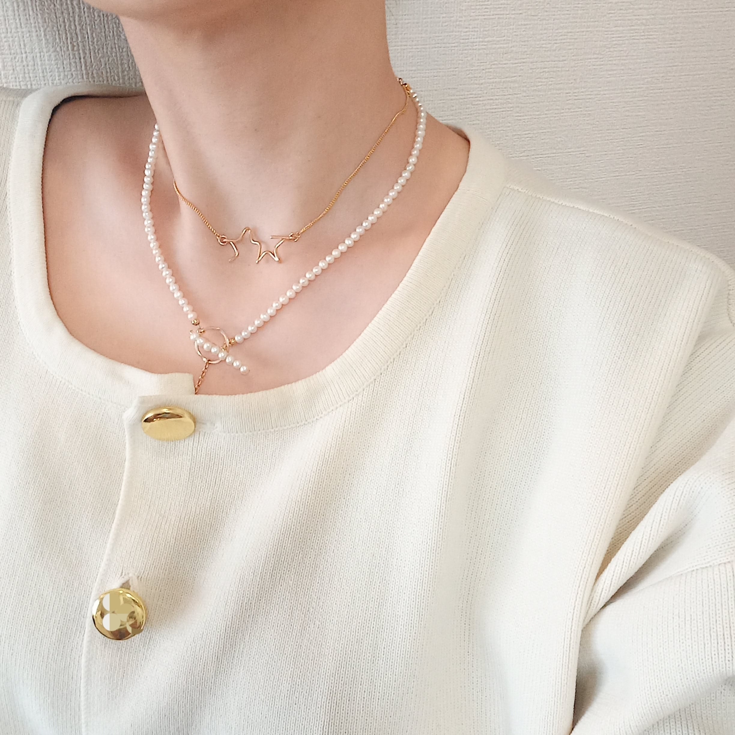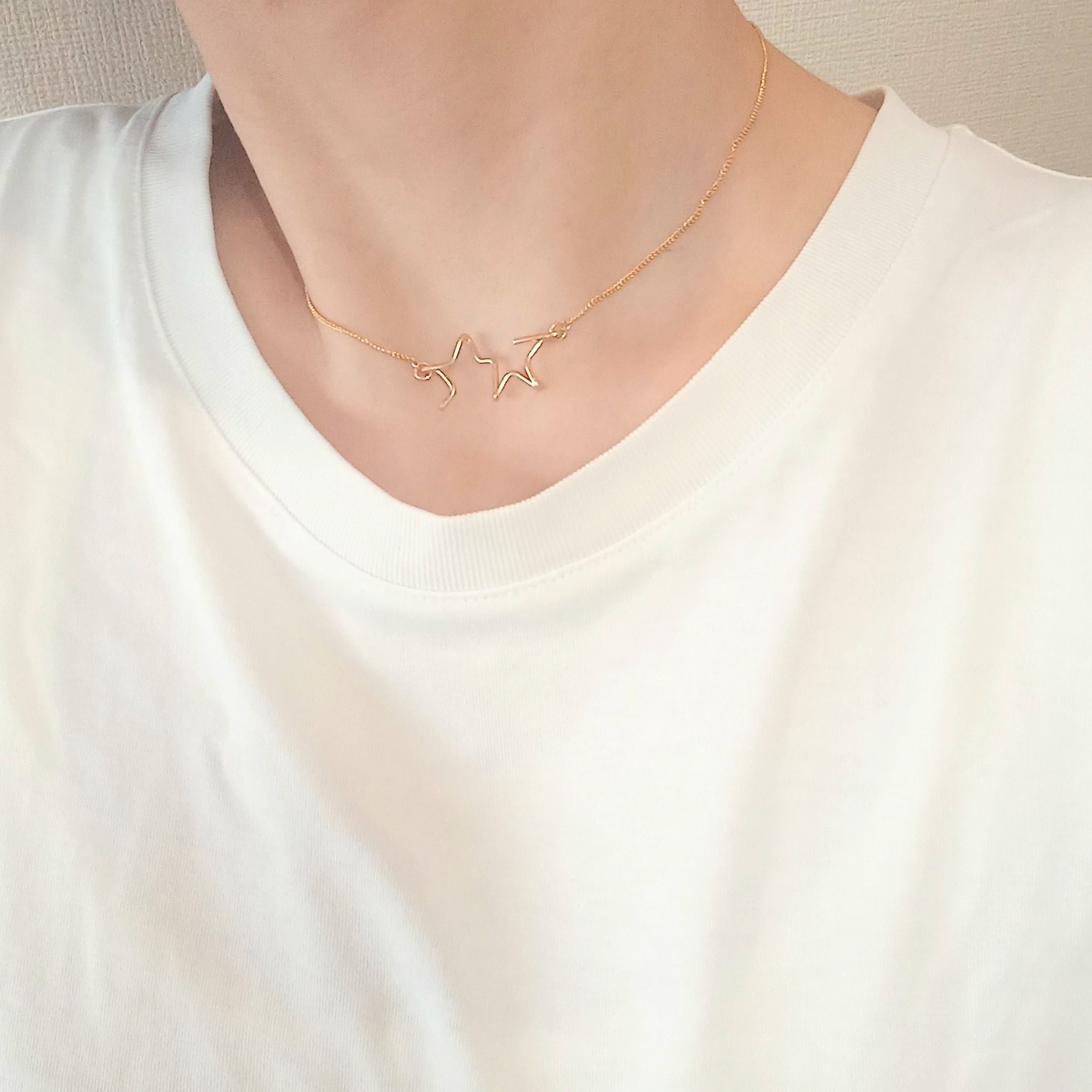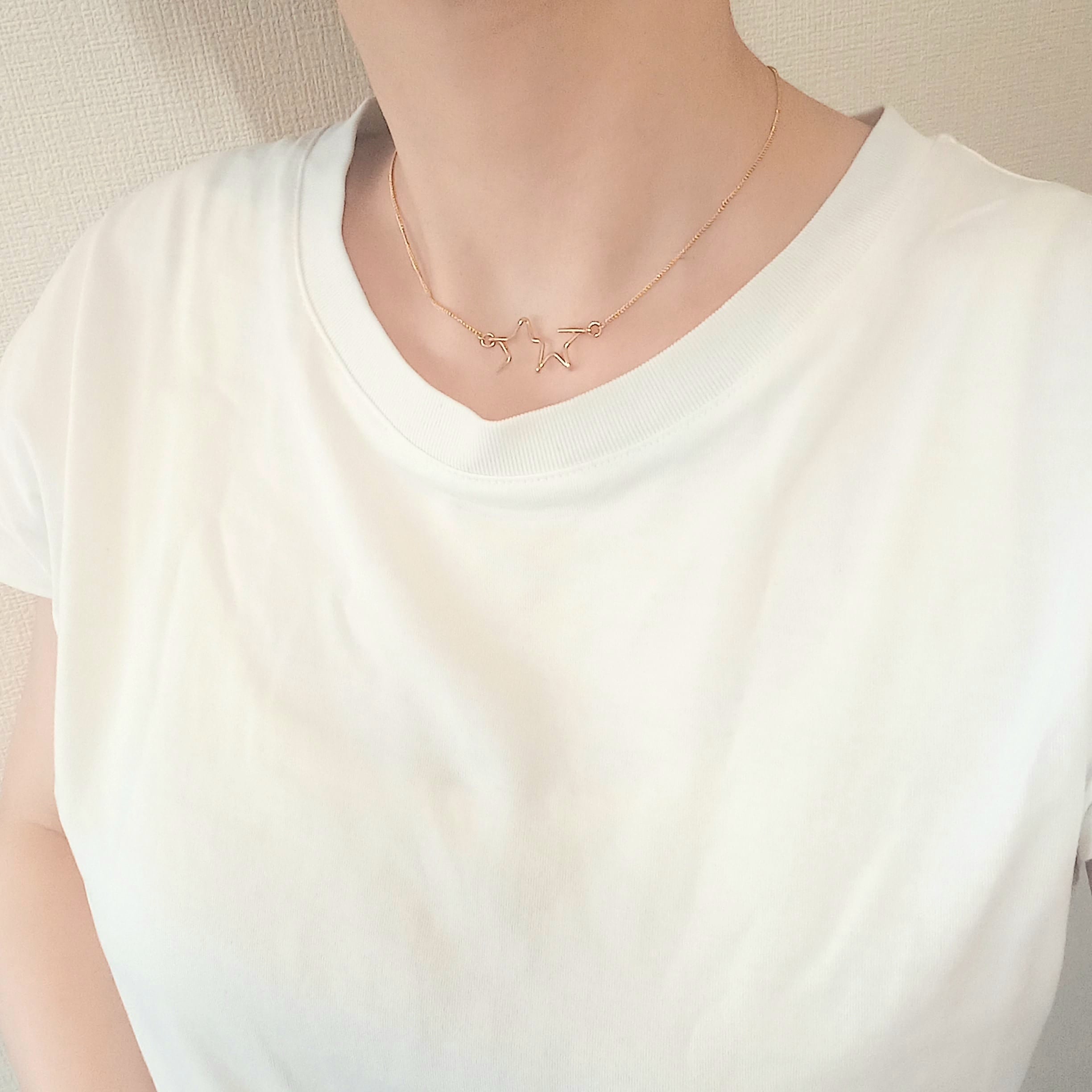 無駄を削ぎ落としたゴールドチェーンに、繊細なワイヤーの星。